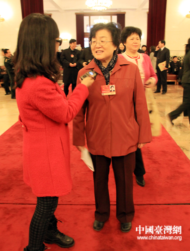 十一屆全國人大四次會議圓滿完成各項(xiàng)議程后,今天上午在人民大會堂閉幕。圖為臺籍代表魏麗惠在參加閉幕會時接受記者采訪。(中國臺灣網(wǎng) 王偉 攝)