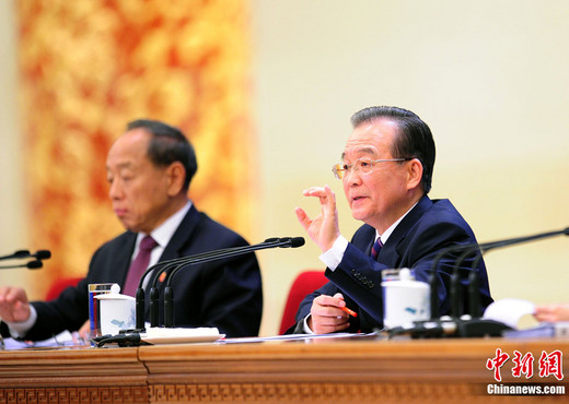 3月14日,十一屆全國人大四次會(huì)議閉幕,溫家寶總理舉行記者會(huì)答中外記者問時(shí)表示,我們和臺(tái)灣人民是同胞,骨肉之親析而不殊。中新社發(fā) 張麗君 攝