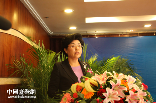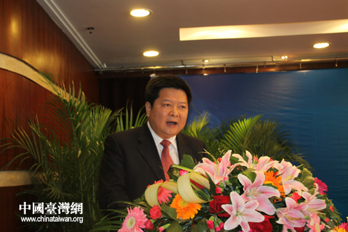 國務院臺灣事務辦公室主任助理龍明彪在致辭中表示,希望臺商能抓住機會感受寧夏的優美風土、豐富物產與巨大的發展潛力,投資西部、投資寧夏,謀取事業的飛速發展。(中國臺灣網 楊麗 攝)