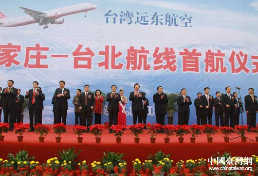 據了解,遠東航空公司成立于1957年,曾于2003年1月首飛臺灣至上海春節包機。遠東航空執飛的石家莊至臺北桃園機場航線,初期每周一對飛一班,漸次增加到周一、周三、周五各飛一班。未來,遠東航空公司還將開通太原、合肥等8個城市的航班。(記者 劉海偉)