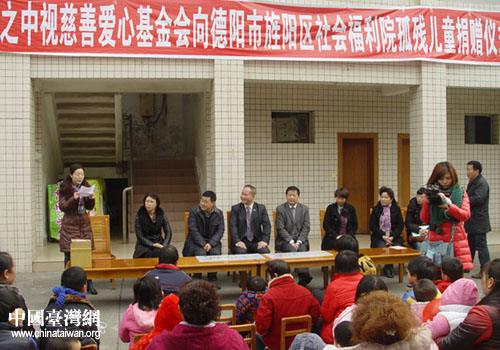 臺灣中視慈善基金會向德陽旌陽區(qū)福利院捐贈儀式現(xiàn)場。(德陽市臺辦 甘和林 攝)