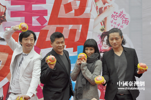 臺灣藝人澎恰恰、九孔、陳怡蓉等專程飛抵上海,為臺灣甜柿造勢。(中國臺灣網發)