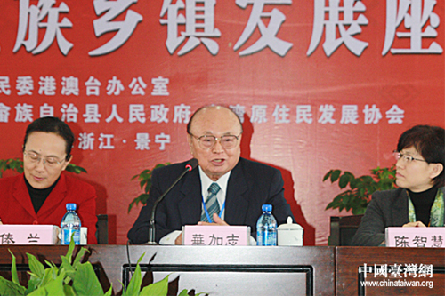 座談會上,景寧畬族自治縣委常委、統戰部長藍小明向來自兩岸的少數民族朋友表示熱烈歡迎。他說,在國際金融危機持續蔓延和世界經濟增長明顯減速的大環境下,受到自然條件、歷史等因素制約的海峽兩岸少數民族地區如何更好、更快地促進地區經濟發展成為了必須要面對的問題。臺灣少數民族地區和景寧在氣候、地理環境等方面有很多相似之處,特別是臺灣少數民族同胞在發展民族經濟方面有許多值得學習的經驗。因此,希望兩岸同胞進行研討,以期增進兩岸少數民族經濟的交流合作,促進兩岸少數民族地區的繁榮發展。