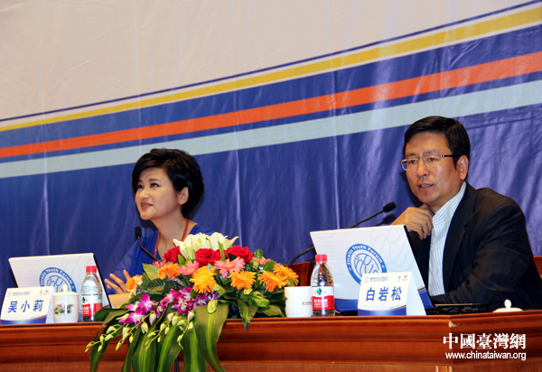 中央電視臺(tái)主持人白巖松和鳳凰衛(wèi)視主持人吳小莉一起現(xiàn)身廈門大學(xué),共同主持了海峽青年論壇主旨論壇。(中國臺(tái)灣網(wǎng) 芮益芳 攝)