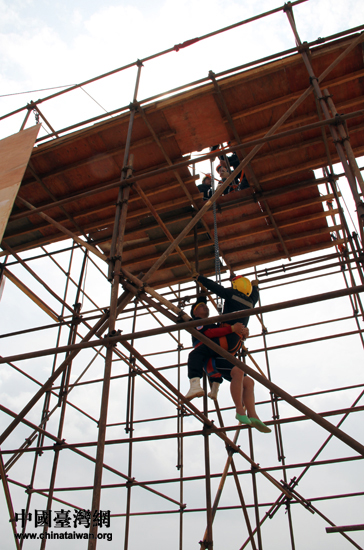 臺灣南投·新高雄紅十字救災大隊現場演練立坑救援。(中國臺灣網 王思羽 攝)