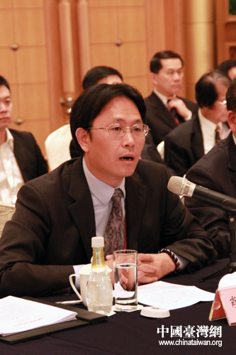 中國國民黨國政研究基金會教育文化組召集人李建興,在28日下午召開的第八屆兩岸經貿文化論壇“擴大文教交流”專題研討會上發言。(中國臺灣網 楊麗 攝)