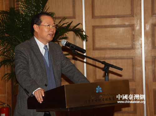 “2012年臺灣政局暨兩岸關系回顧與展望研討會”今天舉行,海峽兩岸關系協會副會長王在希致辭。(中國臺灣網 趙靜 攝)