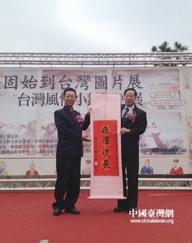 中國臺灣網12月8日彰化消息 8日,應高雄市華夏文經交流促進會的邀請,由海峽兩岸關系協會會刊——《兩岸關系》雜志社主辦的“從固始到臺灣圖片展臺灣風情小鎮巡回展”在臺灣彰化鹿港龍山寺隆重舉行,這是《兩岸關系》雜志社繼2011年1月以來,第三次赴臺舉辦從固始到臺灣圖片展。