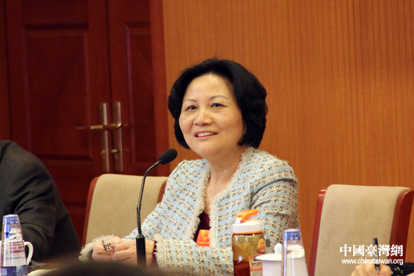 十二屆全國人大一次會議臺灣省代表團討論政府工作報告,陳云英代表發(fā)言。(中國臺灣網(wǎng) 楊麗 攝)
