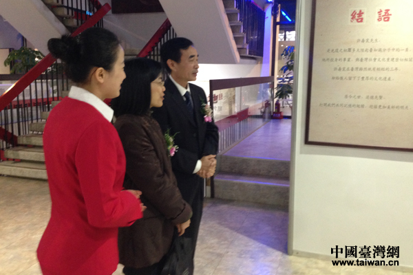 中國臺灣網12月21日消息 2013年12月21日,應社團法人臺南市文化協會邀請,由海峽兩岸關系協會會刊—《兩岸關系》雜志社與中國閩臺緣博物館共同主辦的海峽兩岸交流基地圖片展暨許壽裳與光復初期臺灣的文化重建圖片展在臺灣大學農陳館隆重舉行,《兩岸關系》雜志社法人代表、主持工作副社長鐘河林、中國閩臺緣博物館黨委書記黃糴問、臺北市文化局長劉維公、臺北市議員王鴻薇、臺灣大學中文系副主任李存智、中國文化大學政治系林崇義、社團法人臺南市文化協會顧問張先鵬等嘉賓、媒體記者200余人出席開幕式。