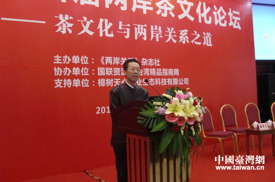 中國國民黨組發(fā)會青年部副主任、臺灣梅山制茶有限公司董事長林政豐在會上發(fā)言。(圖片來源:《兩岸關系》雜志)