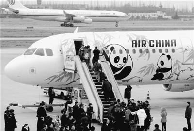 2009年1月,國航西南分公司熊貓彩繪春運包機從成都首航臺北。
