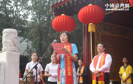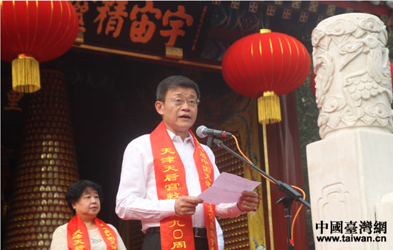 國(guó)務(wù)院臺(tái)辦交流局局長(zhǎng)黃文濤宣讀《關(guān)于同意在天津天后宮設(shè)立海峽兩岸交流基地的批復(fù)》。(中國(guó)臺(tái)灣網(wǎng) 吳曉寒 攝)