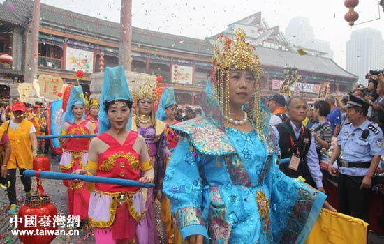 中國臺灣網9月10日天津訊(記者 吳曉寒) 以“情系海上絲路、弘揚媽祖精神、建設美麗天津”為主題的第八屆中國·天津媽祖文化旅游節10日開幕。天津市委常委、統戰部長王宏江,中國國民黨副主席胡志強,國務院臺辦副主任龍明彪,副市長趙海山,以及市委、市政府有關領導,臺灣各縣市媽祖宮廟和世界各地媽祖宮廟代表,來自15個國家和地區的800余名嘉賓共同參與活動。