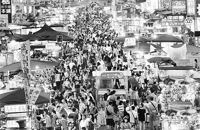 六合夜市曾經(jīng)每晚6時到10時擠得滿滿都是人,其中八成是陸客。來源:中時電子報