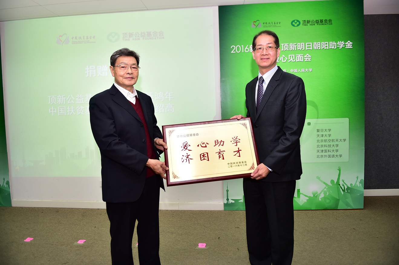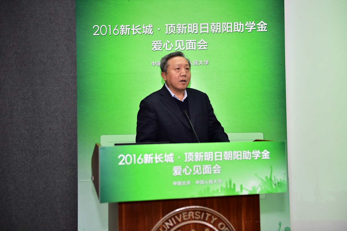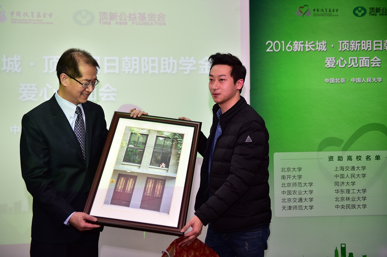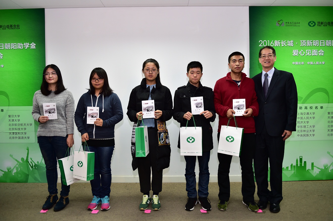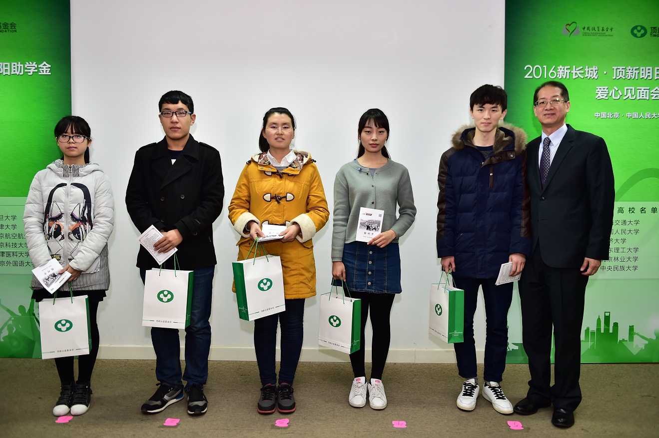 “頂新明日朝陽獎學金”于2007年開展,旨在全國范圍內幫助成績優(yōu)異、家境清貧的大學生,幫助他們順利完成大學學業(yè),成人、成才回饋社會的持續(xù)項目。持續(xù)十年的獎學金項目已惠及超過2500名清貧優(yōu)秀的大學學子,累計捐助獎助學金950萬元。2015年,頂新公益基金會在中國扶貧基金會設立“新長城·頂新明日朝陽助學金”,為成績優(yōu)異、家境清貧、品德正直的大學生提供助學金支持,資助額度為每人3000元。兩年以來,頂新公益基金會累計捐贈214.65萬元,資助了19所高校605名學生,為他們提供經(jīng)濟資助。同時,頂新公益基金會還注重提升同學們的個人能力,幫助同學們成長成才,支持開展“大學生公益社團領袖集訓營暨新長城自強社社長培訓班”,為學生提供學習和交流的機會。中國扶貧基金會江紹高副會長為活動致辭,并對同學們提出殷切希望,期待同學們能夠珍惜來自社會的關愛,努力鍛造自己,成為有用之才,不負愛心,不負眾望。