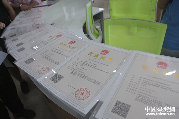 園區(qū)已為臺(tái)灣青年創(chuàng)業(yè)企業(yè)辦理好營(yíng)業(yè)執(zhí)照。(中國(guó)臺(tái)灣網(wǎng) 于斯文 攝)