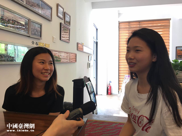 廈門大學(xué)俄語專業(yè)的吳冠璇(左)和鄒辰(右)向記者講述她們跨越海峽的友誼。