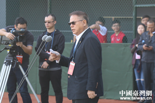 海峽兩岸棒球交流合作委員會名譽主席彭誠浩在開幕式上致辭。(中國臺灣網(wǎng) 陳文韜)