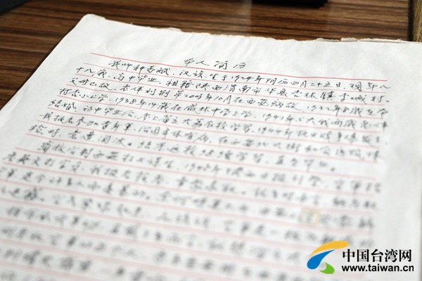 種志斌為入黨所寫的《個人簡介》。(中國臺灣網 扶海濤 翻攝)