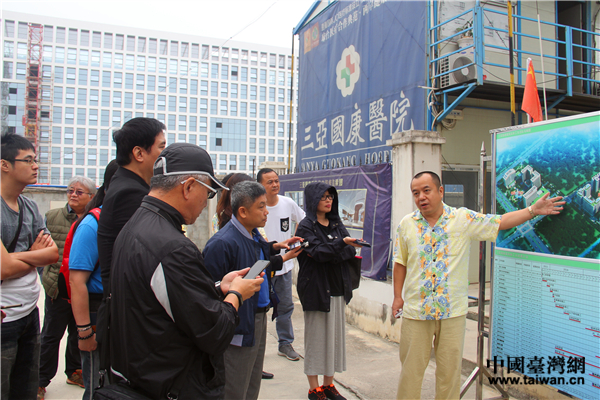 三亞國康醫院負責人向兩岸網絡媒體人介紹項目整體情況。(中國臺灣網 吳曉寒 攝)