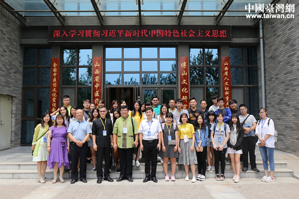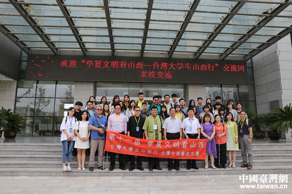 臺灣大學生山西行參訪交流團在山西傳媒學院樓前合影。(中國臺灣網 袁楚 攝)