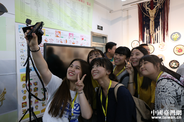 臺灣大學生參訪過程中不忘玩自拍。(中國臺灣網 袁楚 攝)