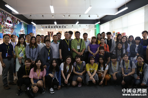 山傳文化科技園內合影留念。(中國臺灣網 袁楚 攝)