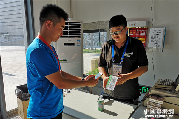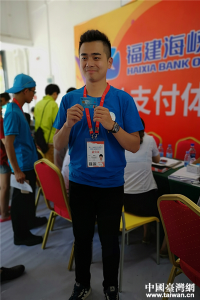 中國臺灣網(wǎng)8月11日福州訊 (記者 郜利敏 張露露)8月10日下午3點半,在海峽青年交流營地文化節(jié)B162,來自臺灣中國文化大學的大二學生林詮盛出示臺胞證,由中國移動公司和福建海峽銀行工作人員為其辦理大陸手機卡及銀行卡,然后在手機上下載支付軟件并綁定銀行卡開通支付功能。20分鐘后,他到隔壁超市使用移動支付消費,“真便捷!”