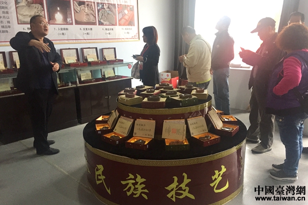 山西省工藝美術大師藺濤為來賓介紹國家級非物質文化遺產。(中國臺灣網 許晗 攝)