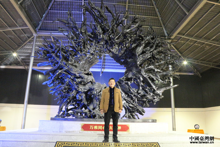 臺商盧泓杰與成都烏木藝術博物館鎮館之寶“萬根同心太陽神”。