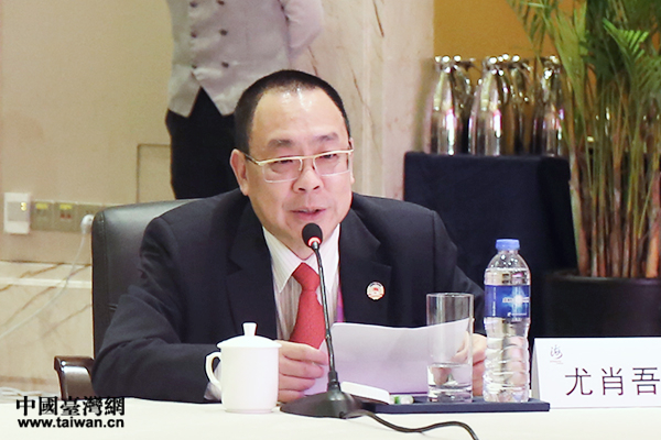 澳門歸僑總會副監事長尤肖吾在海峽兩岸暨港澳僑界圓桌峰會上發言。(中國臺灣網 賈若瀾 攝)