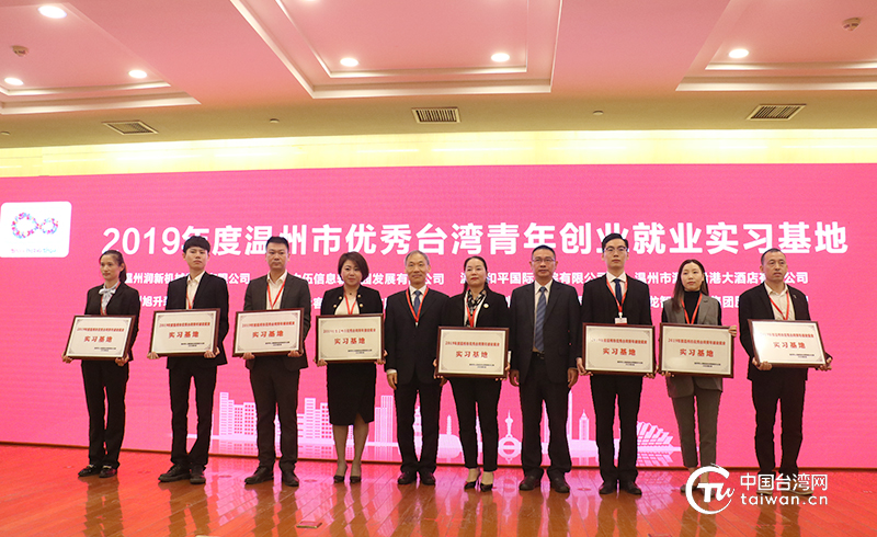 論壇舉行了2019年度溫州市優秀臺灣青年創業就業實習基地授牌儀式。(中國臺灣網 普燕 攝)