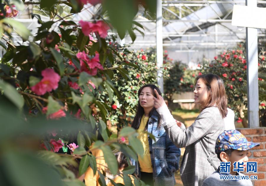 謝丞恩(中)帶領(lǐng)客人參觀農(nóng)場花園(2月20日攝)。