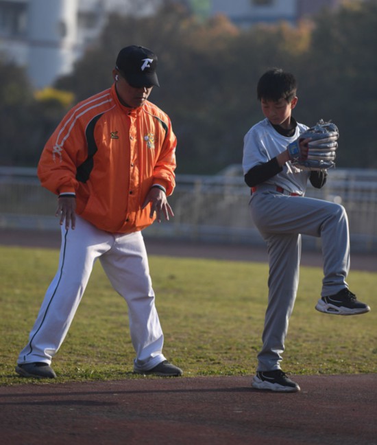 “接球的要訣是什么?”“投手再專注一點”,“很好,保持”……41歲的曾駿安站在場邊,時而給小球手們點贊,更多則是急切的糾正。由于常年從事棒球運動,這位來自臺灣屏東縣的教練身材壯實、皮膚黝黑,板起臉來更顯得威嚴!拔蚁嘈拍蔷淅显,嚴師出高徒!笔軆x征市體育發展中心的委托,曾駿安擔任新集中心小學棒球隊的教練,期待帶著這些少年拿到好的成績。