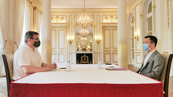中國(guó)駐法國(guó)大使盧沙野近日接受法國(guó)《言論報(bào)》專(zhuān)訪。(圖片來(lái)源:中國(guó)駐法國(guó)使館)