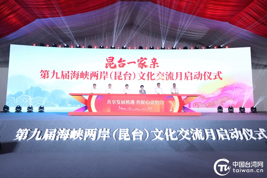 中國臺灣網7月16日昆山訊 (記者 尹賽楠)7月16日,第九屆海峽兩岸(昆臺)文化交流月在昆山啟動。國臺辦與江蘇省市領導,全國臺企聯有關負責人,海峽兩岸工商界代表、文教界人士以及臺灣實習大學生代表約400人共聚昆山,深化昆臺交流合作,增進同胞心靈契合。