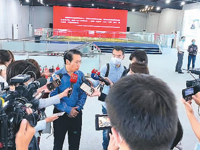 北京市通州區委書記、區長趙磊(中間受訪者)為兩岸記者介紹北京城市副中心建設情況并回答提問。