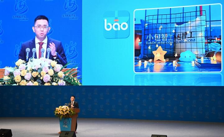 小包智工聯合創始人徐韜在第十三屆海峽論壇大會上發言。新華社記者 林善傳 攝