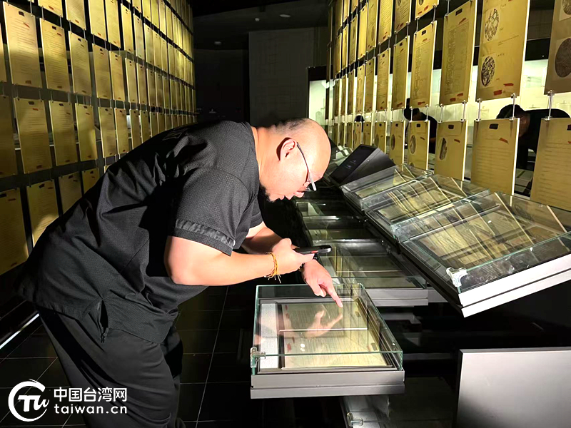 臺(tái)灣自媒體人查看拍攝侵華日軍第七三一部隊(duì)人體實(shí)驗(yàn)報(bào)告。(中國(guó)臺(tái)灣網(wǎng)記者 劉琳 攝)