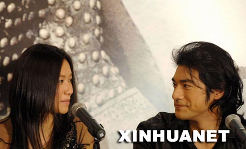 12月10日,電影《投名狀》演員金城武(右)和徐靜蕾在新聞發布會上。