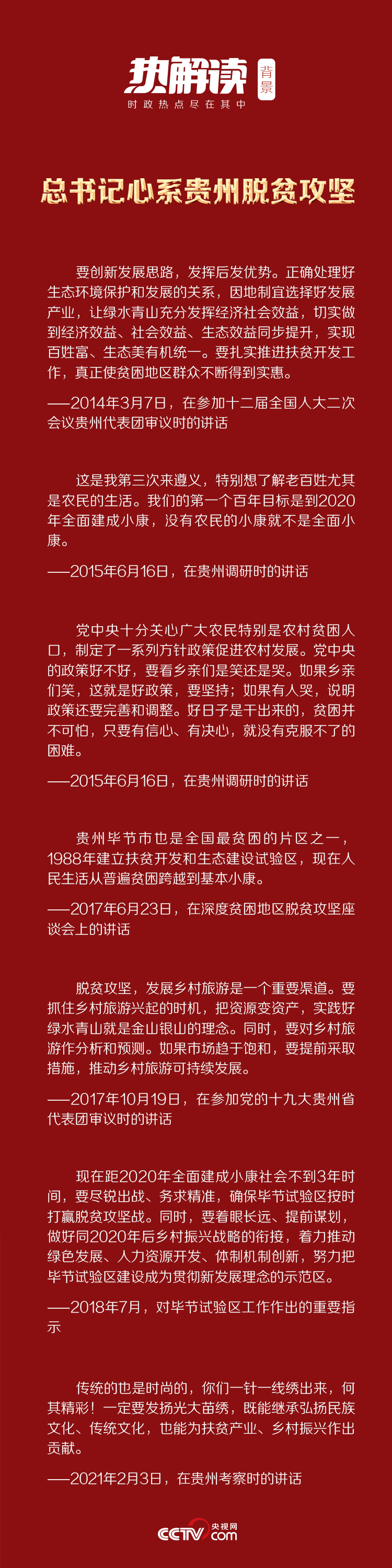 作為脫貧攻堅的主戰場,貴州一直為總書記所牽掛。無論是考察調研,還是全國兩會、黨代會等重要場合,總書記都經常談起貴州。