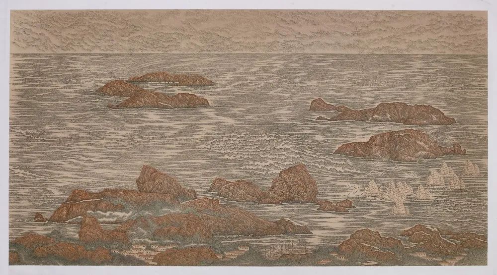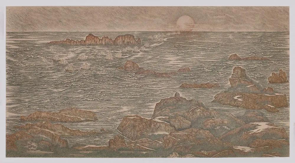 巧的是,浙江洞頭與臺灣一水相連,地緣相近、人緣相親、語言相通、文緣相承,此次,以侯傳芳、金國斌、吳聘真、葉向榮、呂相國等藝術家組成的創作團隊,繼完成《八百里甌江圖》之后,于2020年啟始,歷時一年半余,用獨特的鋼筆畫技法,以甌江入海口的半屏山為開篇,順江入海,延綿海峽,直至高雄半屏山,創作了《兩岸半屏山》山海長卷,展現了兩岸半屏山山水相連、人文相通的歷史淵源。《兩岸半屏山》長卷由12幅高1米、長2米的畫卷組成,總長24米。