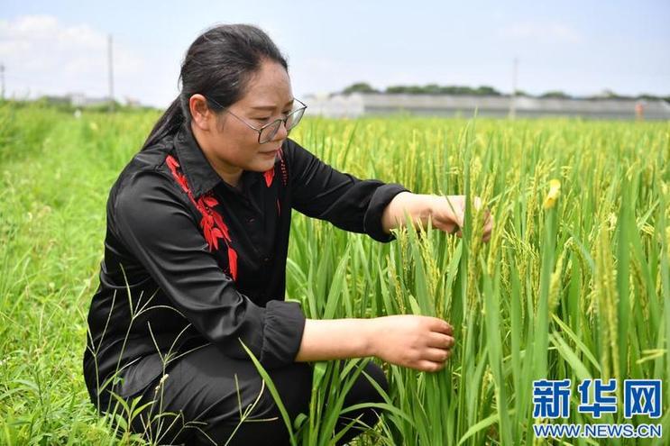 黃聲菊正在查看水稻生長情況。新華網(wǎng)發(fā)