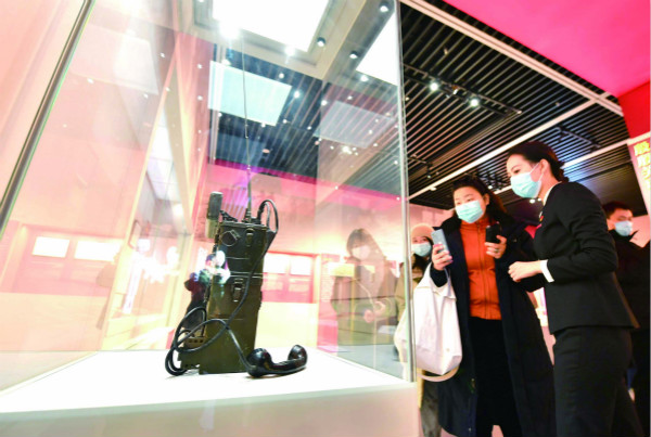 日前,“紅色電波中的領袖風范——毛澤東同志香山時期發(fā)布電報手稿”專題展覽在北京香山革命紀念館舉行。圖為觀眾在觀看拍攝展出的電臺。(圖片來源:人民視覺)