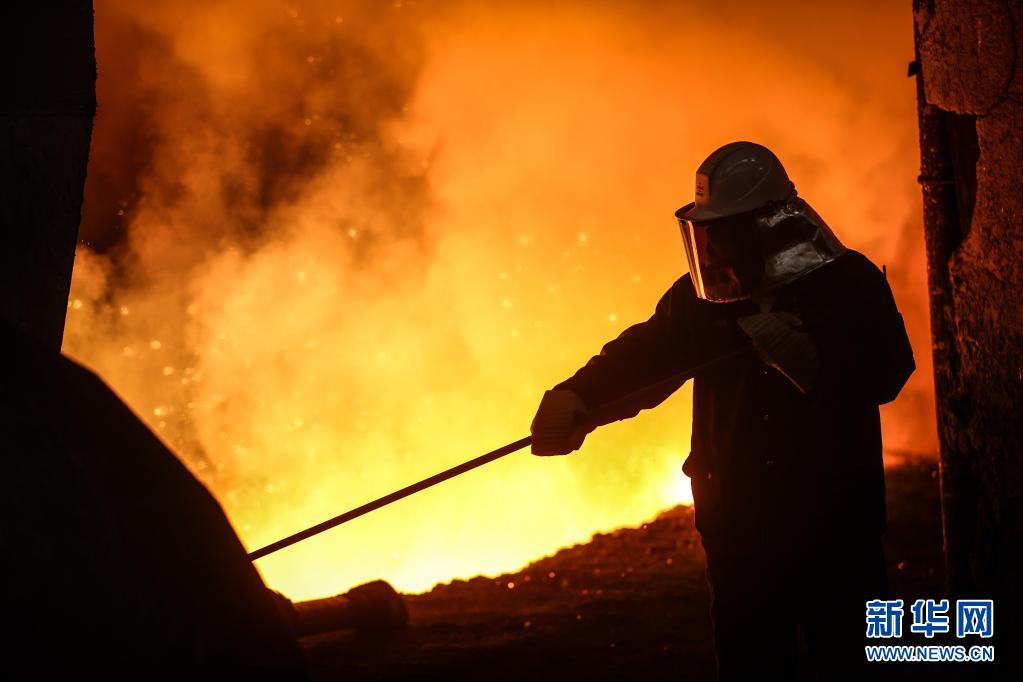 工人在鞍鋼集團(tuán)鞍鋼股份煉鐵總廠三號(hào)高爐忙碌(4月20日攝)。新華社記者 潘昱龍 攝