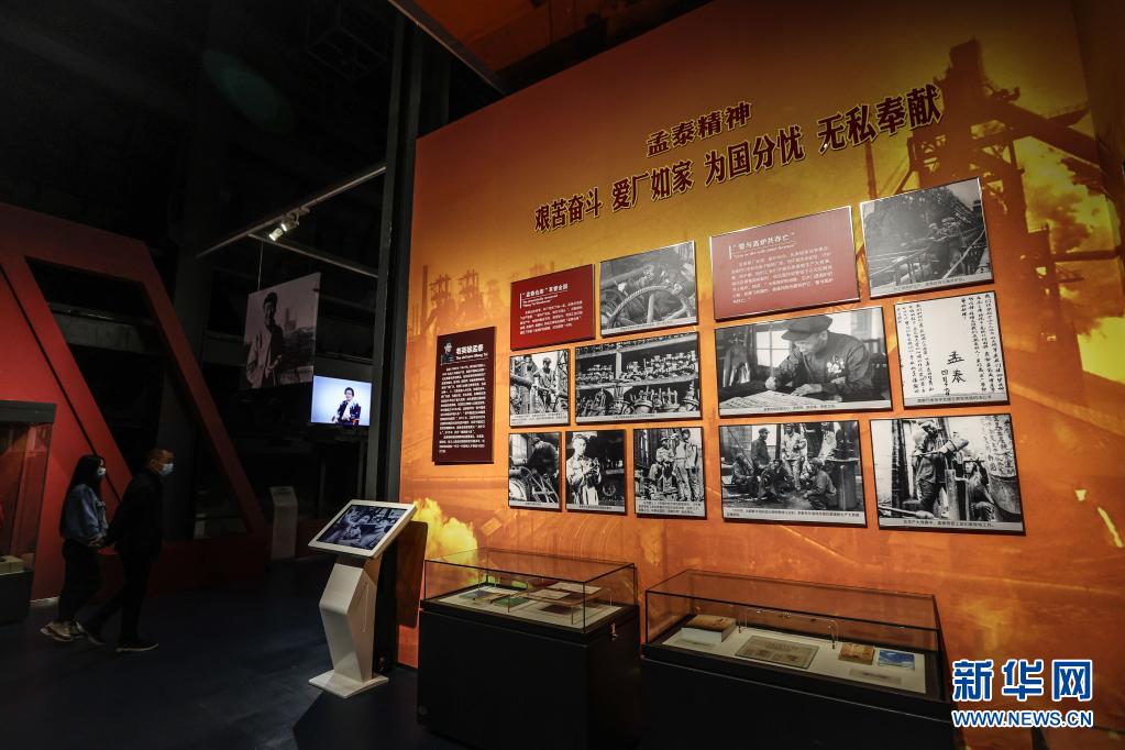 參觀者在鞍鋼集團(tuán)博物館內(nèi)觀看新中國(guó)第一代全國(guó)勞動(dòng)模范孟泰的相關(guān)介紹(4月20日攝)。新華社記者 潘昱龍 攝