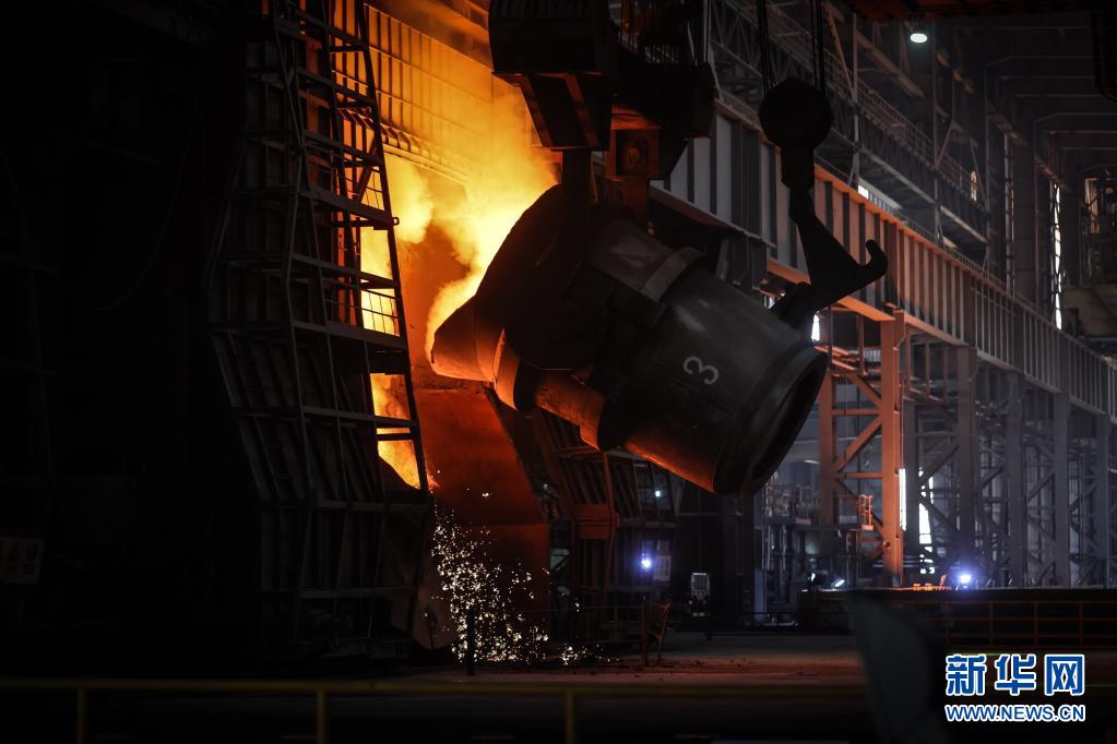 鞍鋼集團(tuán)鞍鋼股份煉鋼總廠三分廠生產(chǎn)車間一角(4月20日攝)。新華社記者 潘昱龍 攝