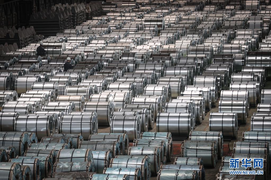 工人在鞍鋼集團(tuán)鞍鋼股份冷軋廠四、五號(hào)鍍鋅線鍍鋅板卷成品區(qū)檢查產(chǎn)品(4月20日攝)。新華社記者 潘昱龍 攝