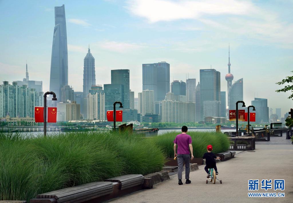 5月15日,市民在上海楊浦濱江公共空間休閑漫步。新華社記者 劉穎 攝